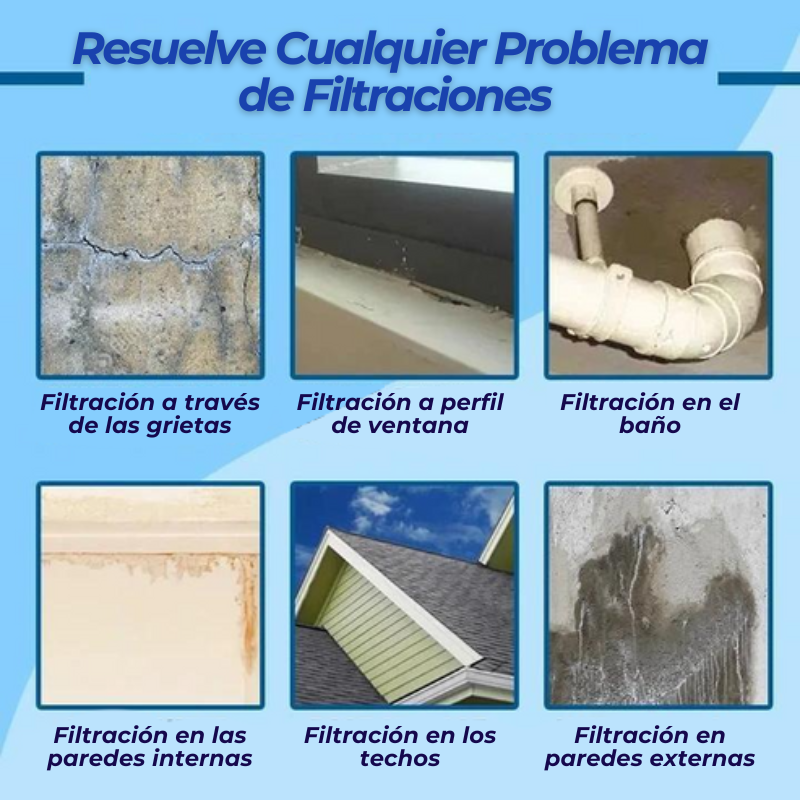 Olvídate de las costosas reparaciones y los productos temporales. La potente fórmula  de AllMend™ sella al instante cualquier fuga de agua en techos, tuberías y otras superficies. Es una solución rápida, fácil y efectiva para todo tipo de grietas, agujeros, desgarros y otras imperfecciones.