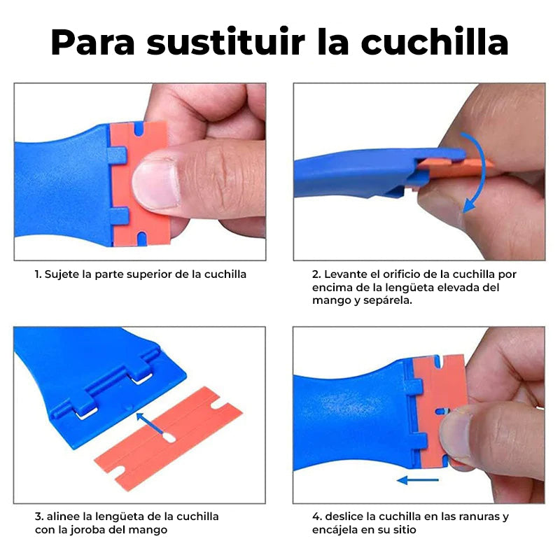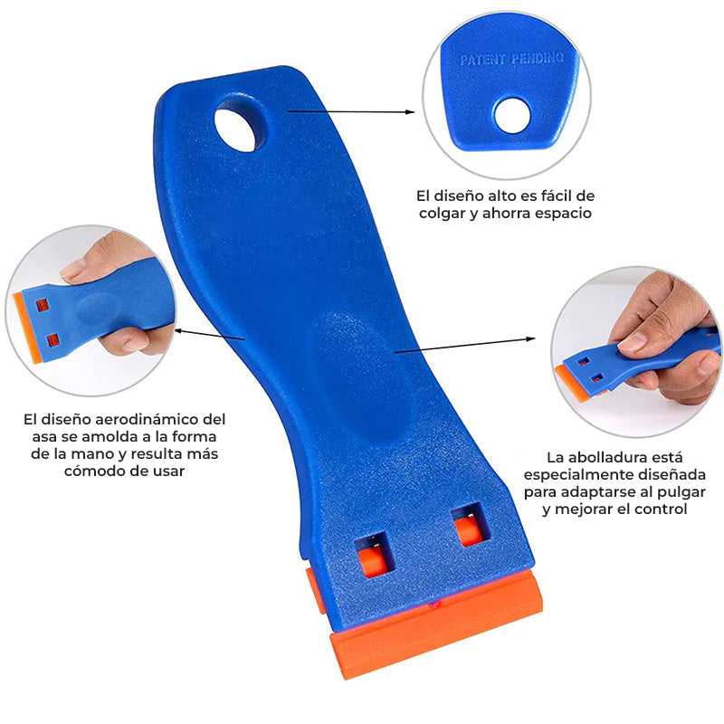 Descubre una solución innovadora para remover todo tipo de adhesivos de forma segura y efectiva. Esta herramienta multifuncional cuenta con cuchillas de plástico intercambiables, garantizando la seguridad mientras ofrece una versatilidad excepcional en diferentes aplicaciones.