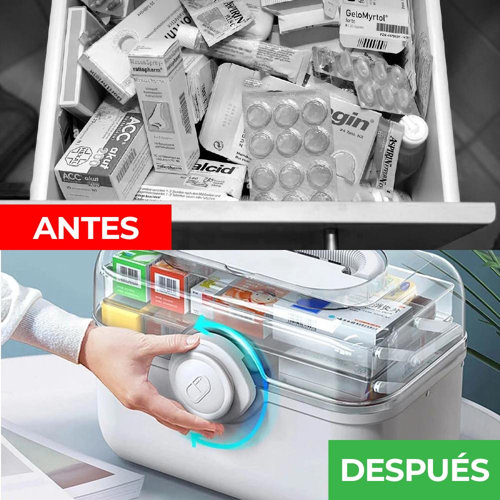 - Perfecta organización: Le permite almacenar sus medicamentos y hacerlos fácilmente accesibles para evitar confusiones y olvidos de dosis.