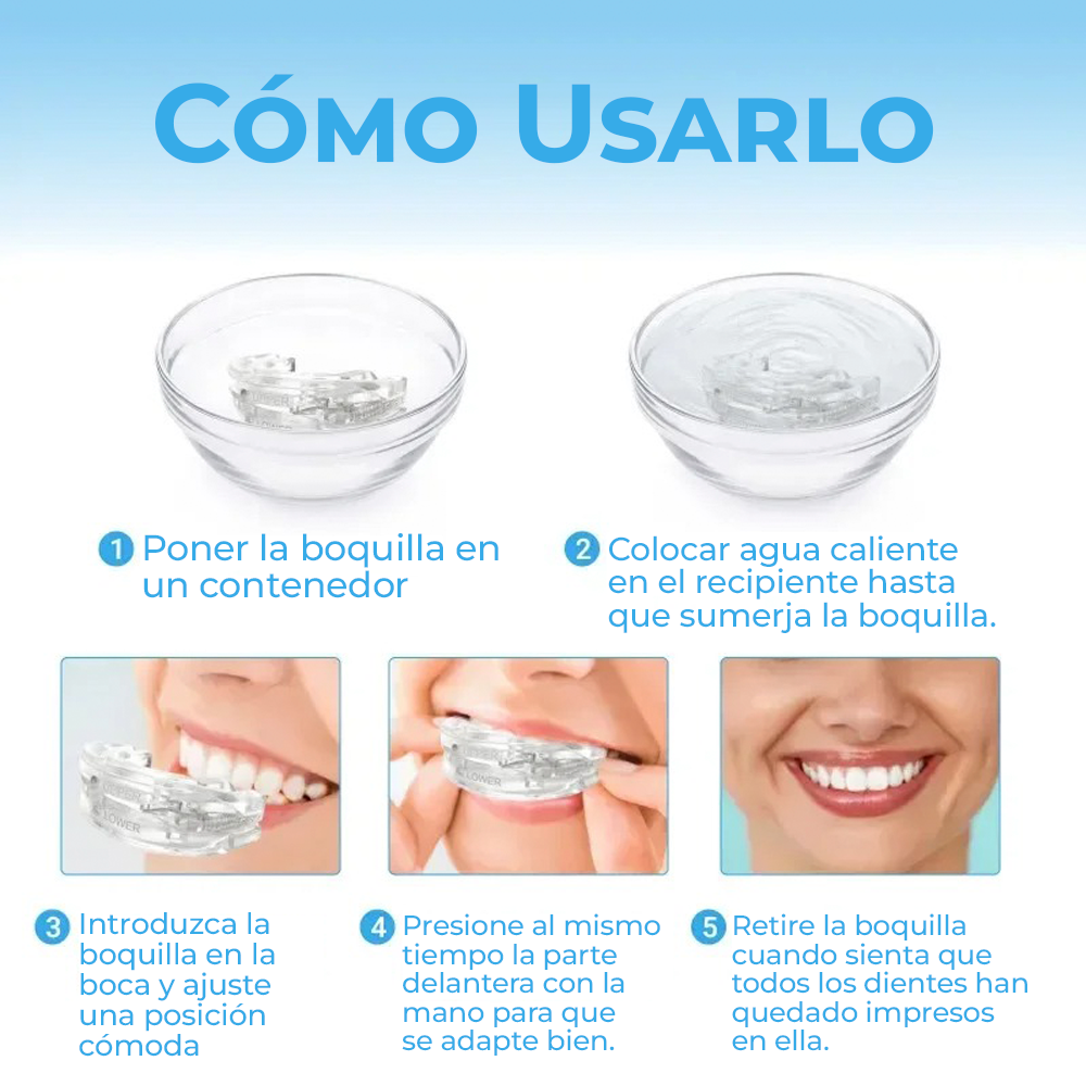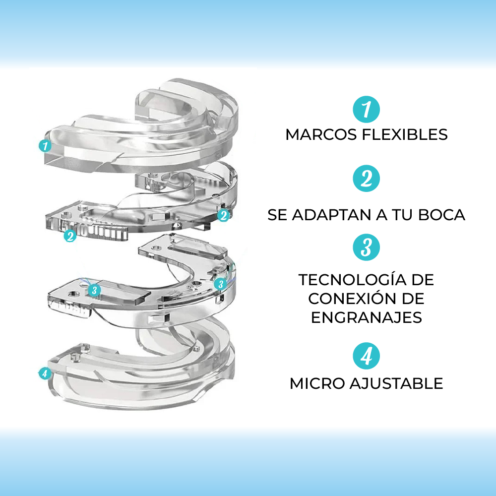 Nuestro dispositivo ataca la raíz del problema al mover suavemente la mandíbula hacia adelante durante la noche. Este movimiento delicado y preciso amplía las vías respiratorias, permitiendo un flujo de oxígeno óptimo mientras duermes. De esta manera, se elimina la obstrucción que causa los ronquidos, proporcionando un alivio inmediato y duradero.
