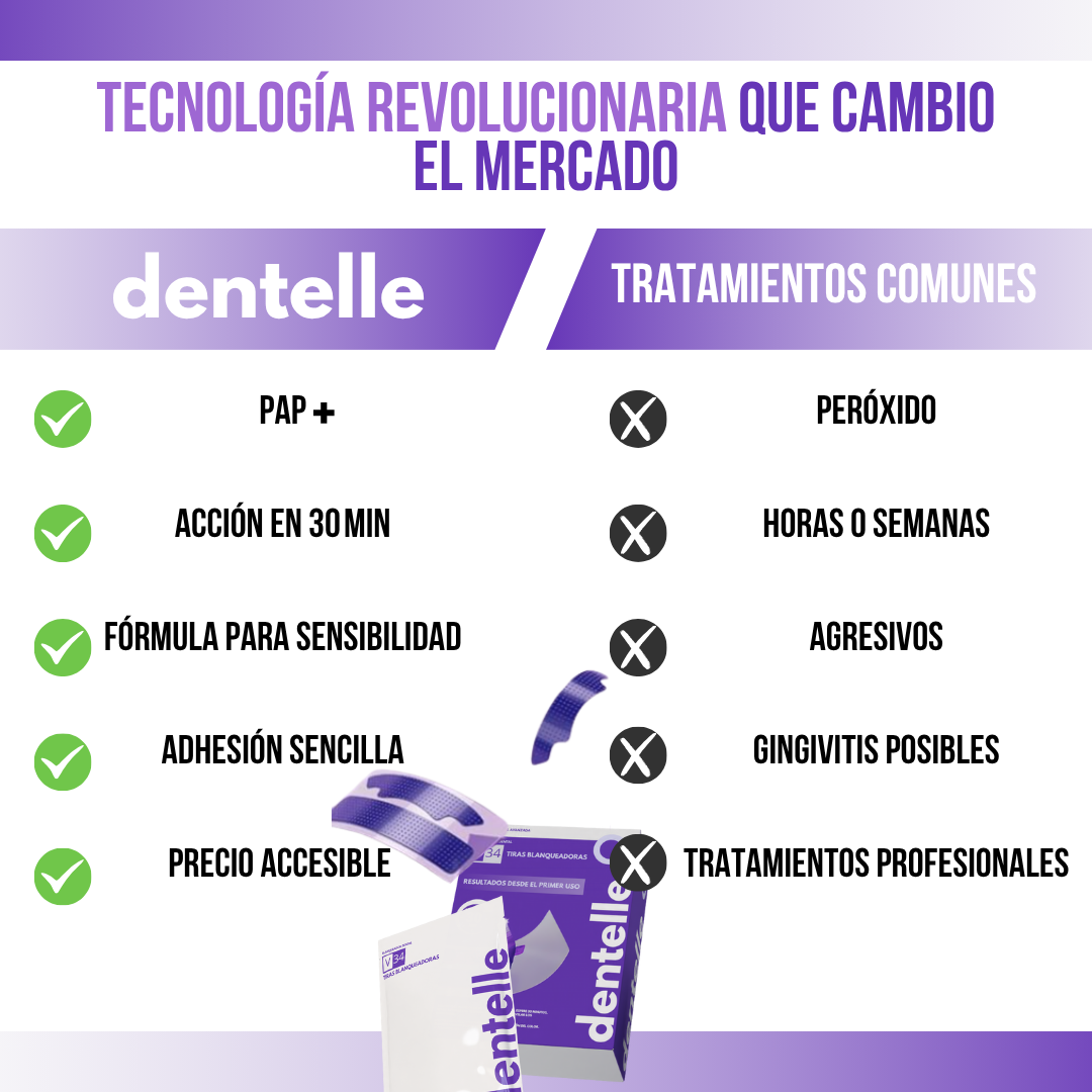 ¡Dentelle™, verás una sonrisa más blanca de inmediato!