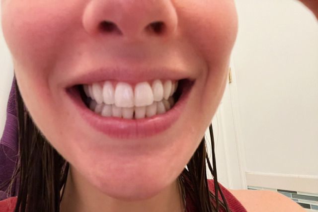 Después de aplicar la tira, debes esperar 30 minutos. Luego, retira la tira y cepilla los residuos morados para ver los resultados de blanqueamiento instantáneo y corrección del color.