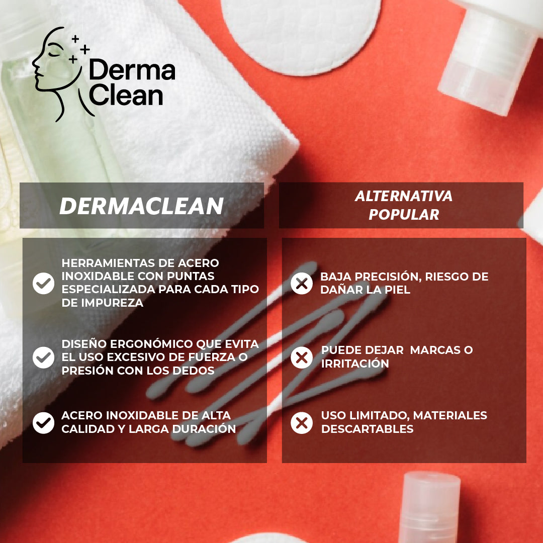 Gracias a sus puntas de precisión de acero inoxidable y su diseño ergonómico, puedes eliminar impurezas de manera segura y controlada, evitando la presión con los dedos que muchas veces deja marcas o irritaciones. Este set está pensado para minimizar el daño en la piel y obtener una limpieza eficaz sin dejar rastros.