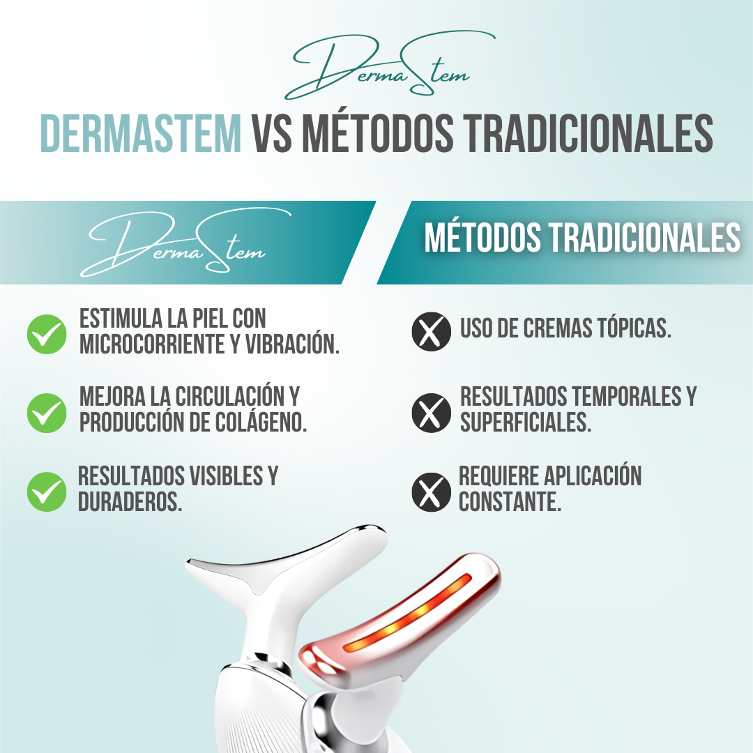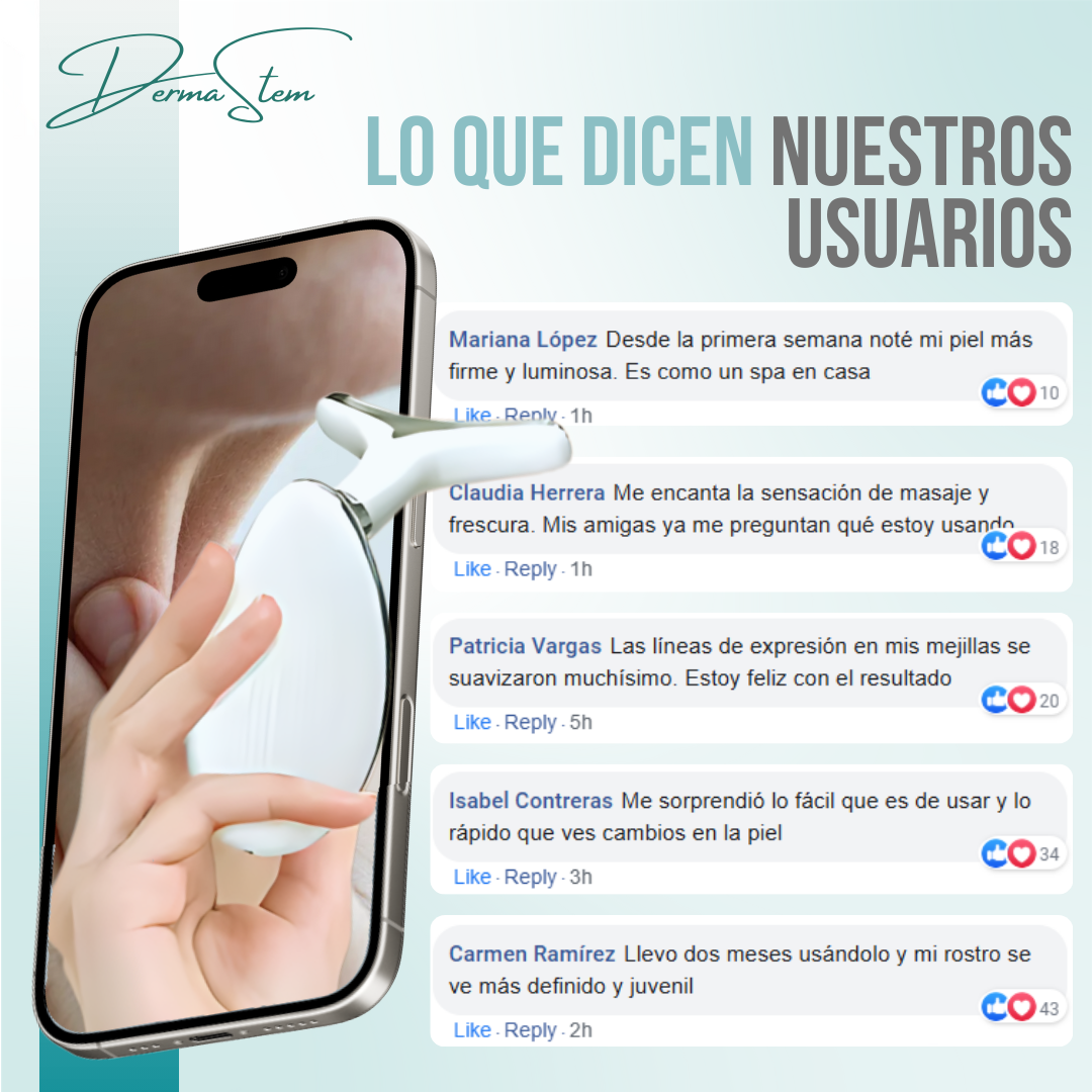 A diferencia de cremas o mascarillas, DERMASTEM™ actúa directamente sobre la estructura de la piel, remodelando el rostro y proporcionando resultados visibles y duraderos. Su diseño ergonómico y portátil permite que se use cómodamente en cualquier momento del día, haciendo de tu rutina de belleza un proceso fácil, eficiente y profesional.