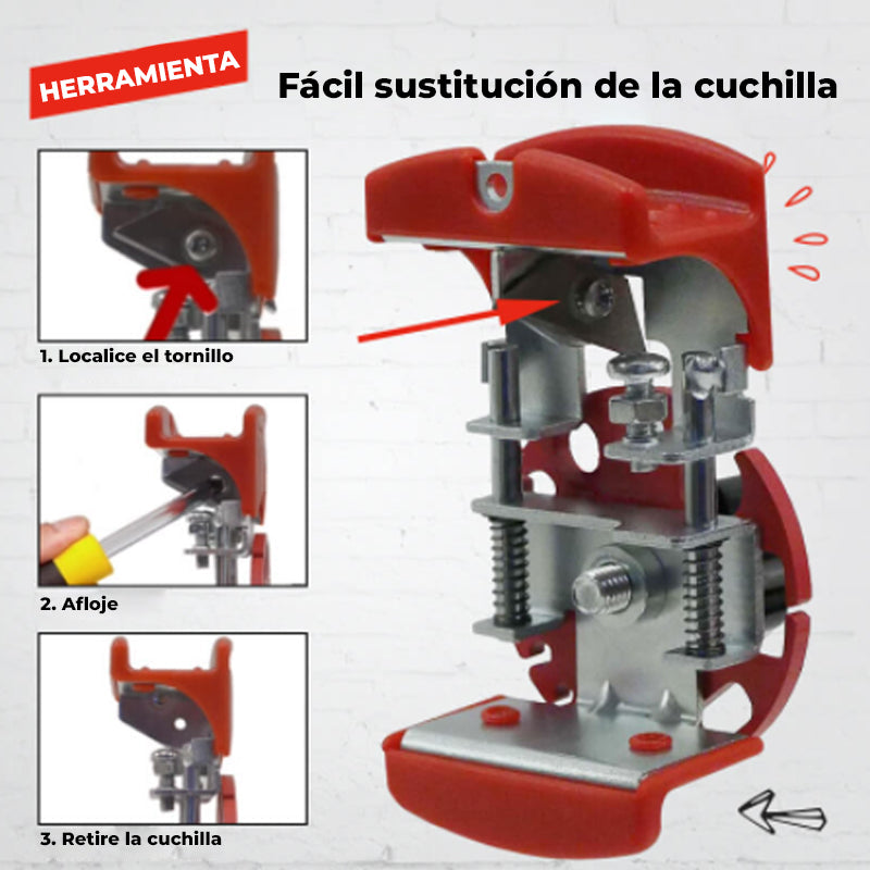 A diferencia de los peladores de cables convencionales, este producto elimina la necesidad de un contacto directo con la cuchilla, garantizando un pelado rápido y seguro. Además, su ajuste de cuchilla previo reduce significativamente el tiempo de trabajo.