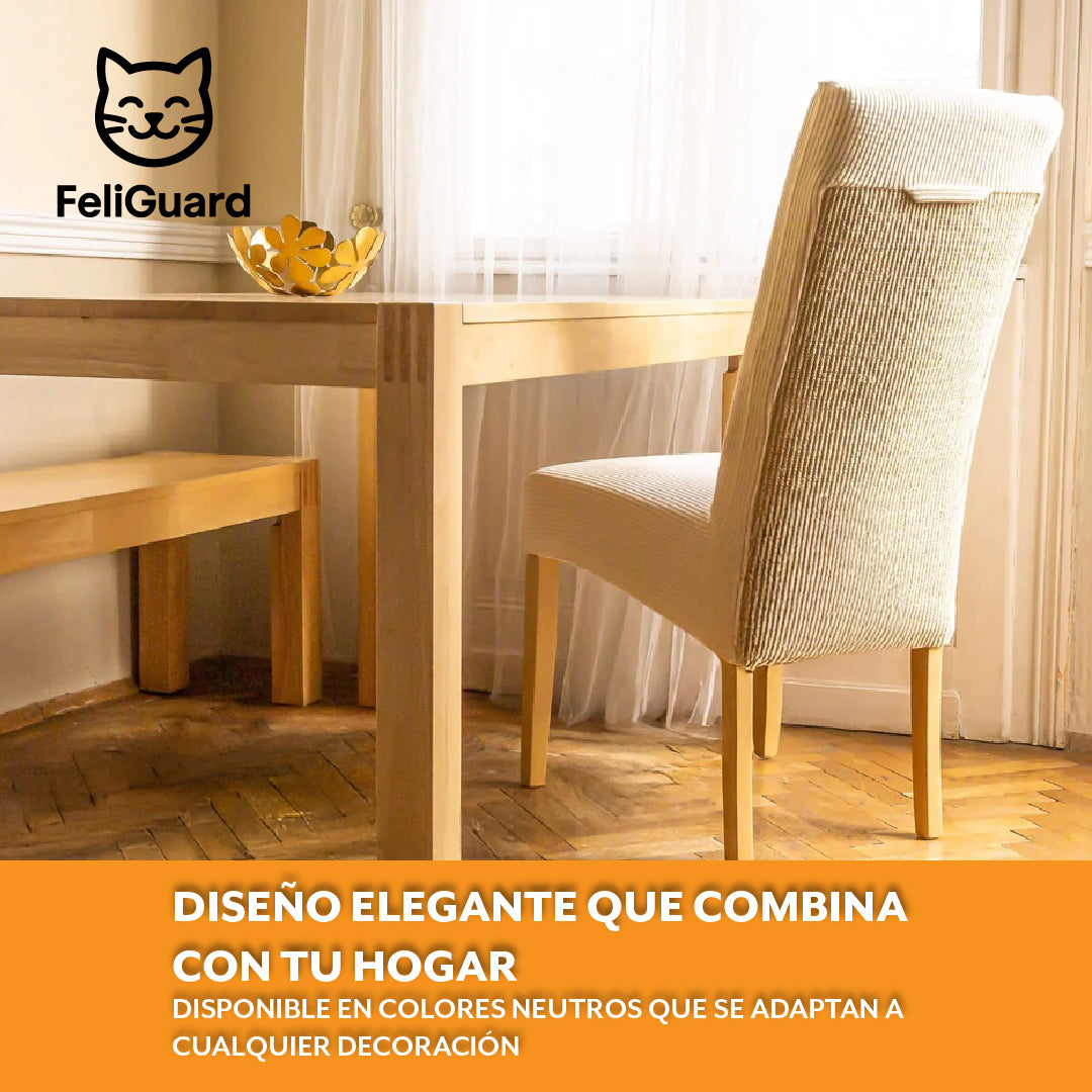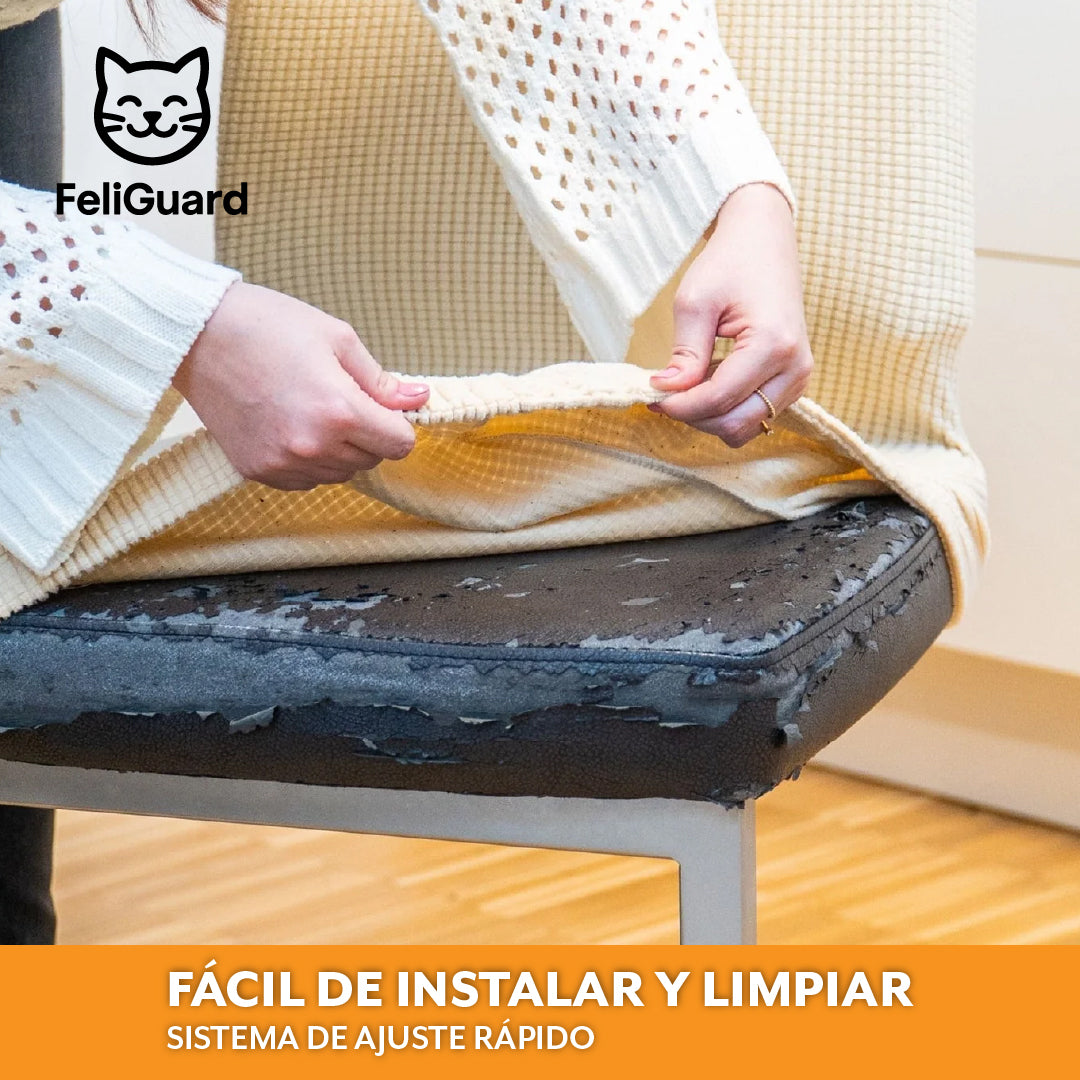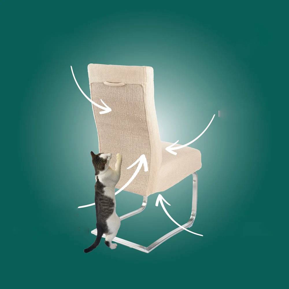 Instalarlo es tan fácil como colocarlo sobre el respaldo de la silla, sin necesidad de tornillos, adhesivos ni herramientas. En menos de un minuto tendrás tus sillas protegidas y listas para resistir arañazos. Además, su diseño envolvente asegura que se mantenga firme y no se deslice, incluso si tu gato lo usa con frecuencia.