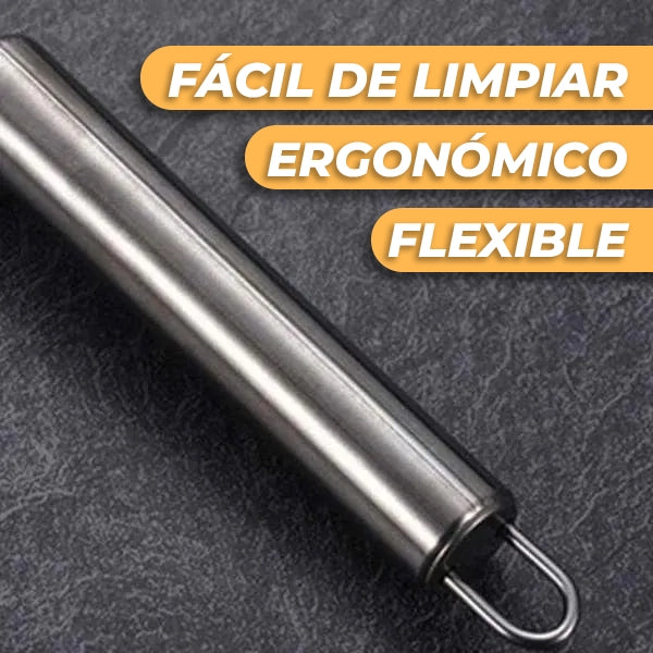 Su manija ergonómica, flexible y redondeada, facilita el corte de cualquier fruta o verdura. Fabricada completamente en acero inoxidable, es fácil de limpiar a mano o en lavavajillas.