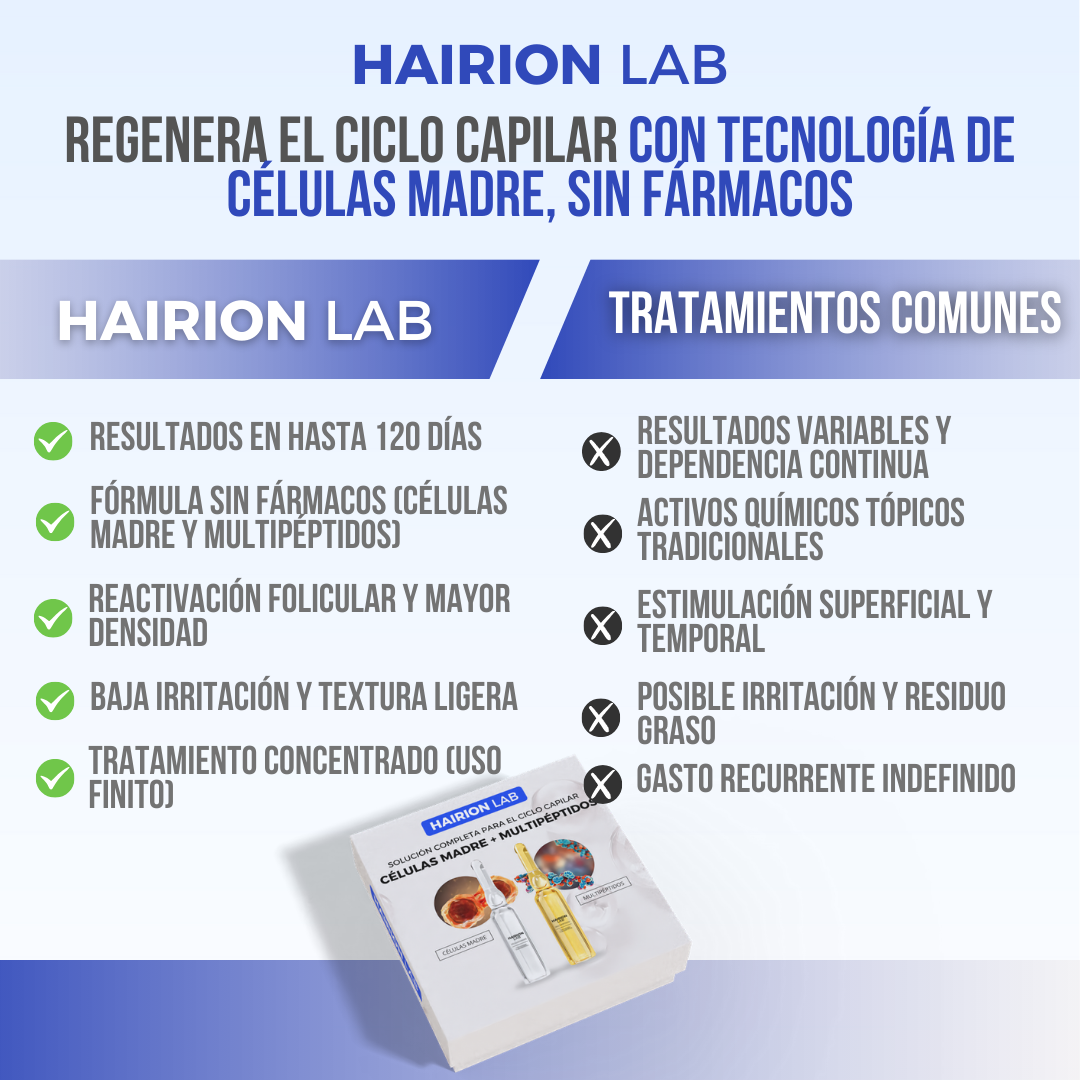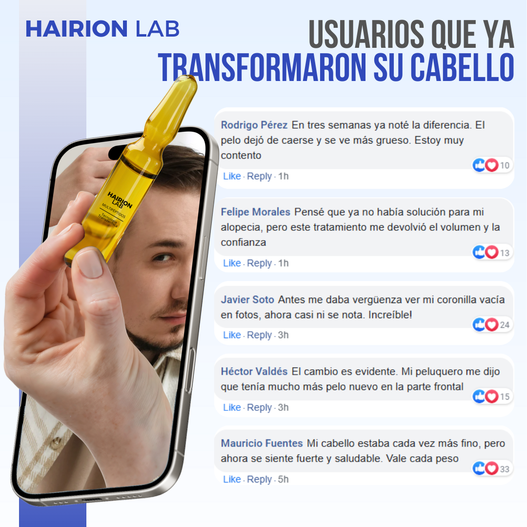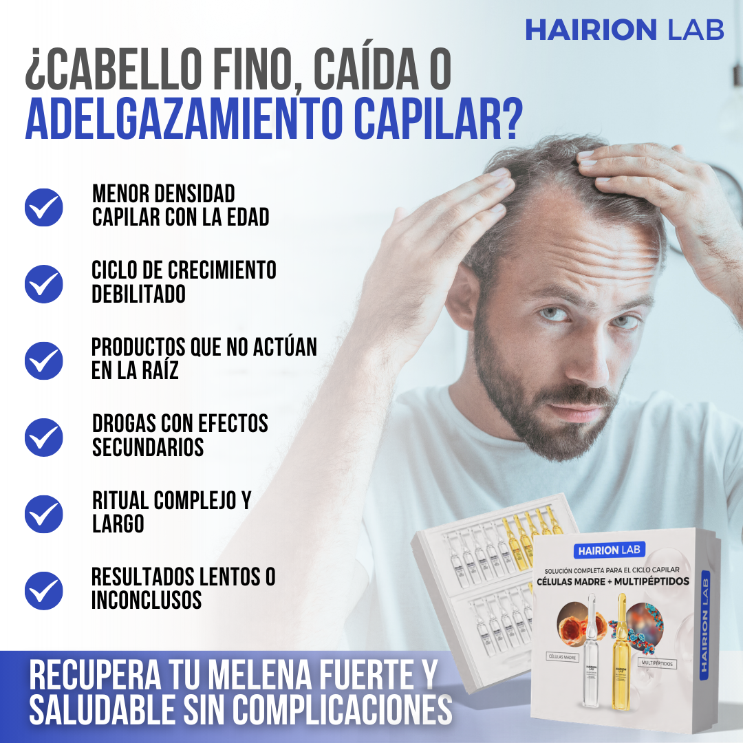 Si sufres de cabello fino, ralo o calvicie por razones genéticas o el envejecimiento, HAIRIONLAB™ es la solución avanzada perfecta para ti.
