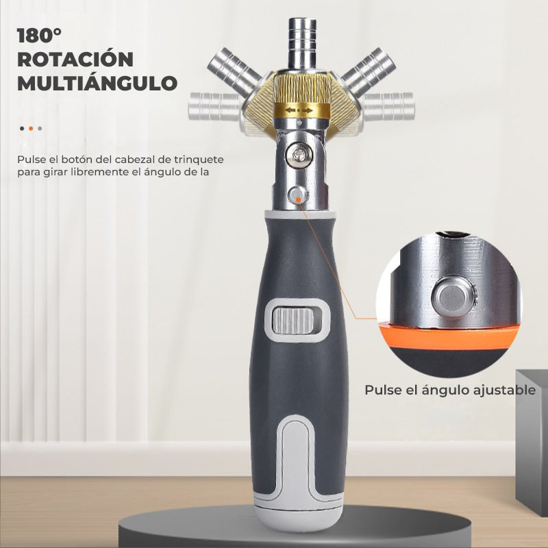 Esta herramienta versátil y compacta ofrece 10 puntas diferentes para abordar cualquier trabajo. Con su diseño ergonómico, proporciona un agarre cómodo y seguro. La función de trinquete ajustable permite trabajar en espacios estrechos con facilidad, haciendo de esta herramienta una adición esencial a tu caja de herramientas.