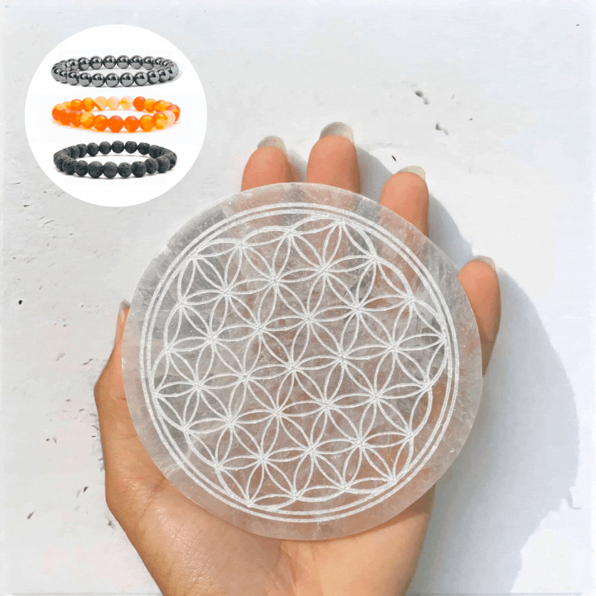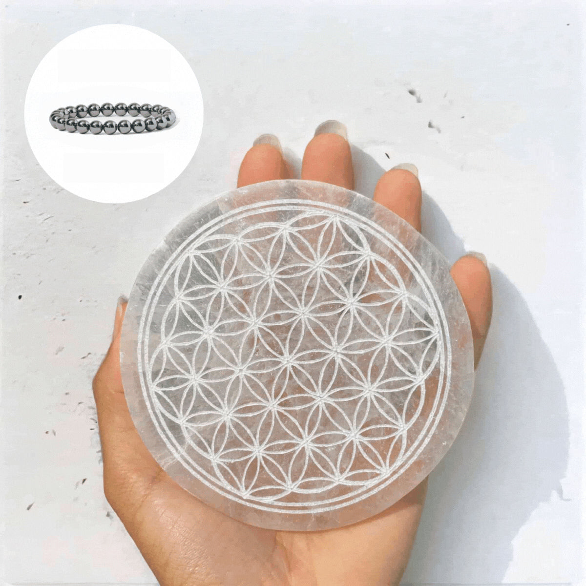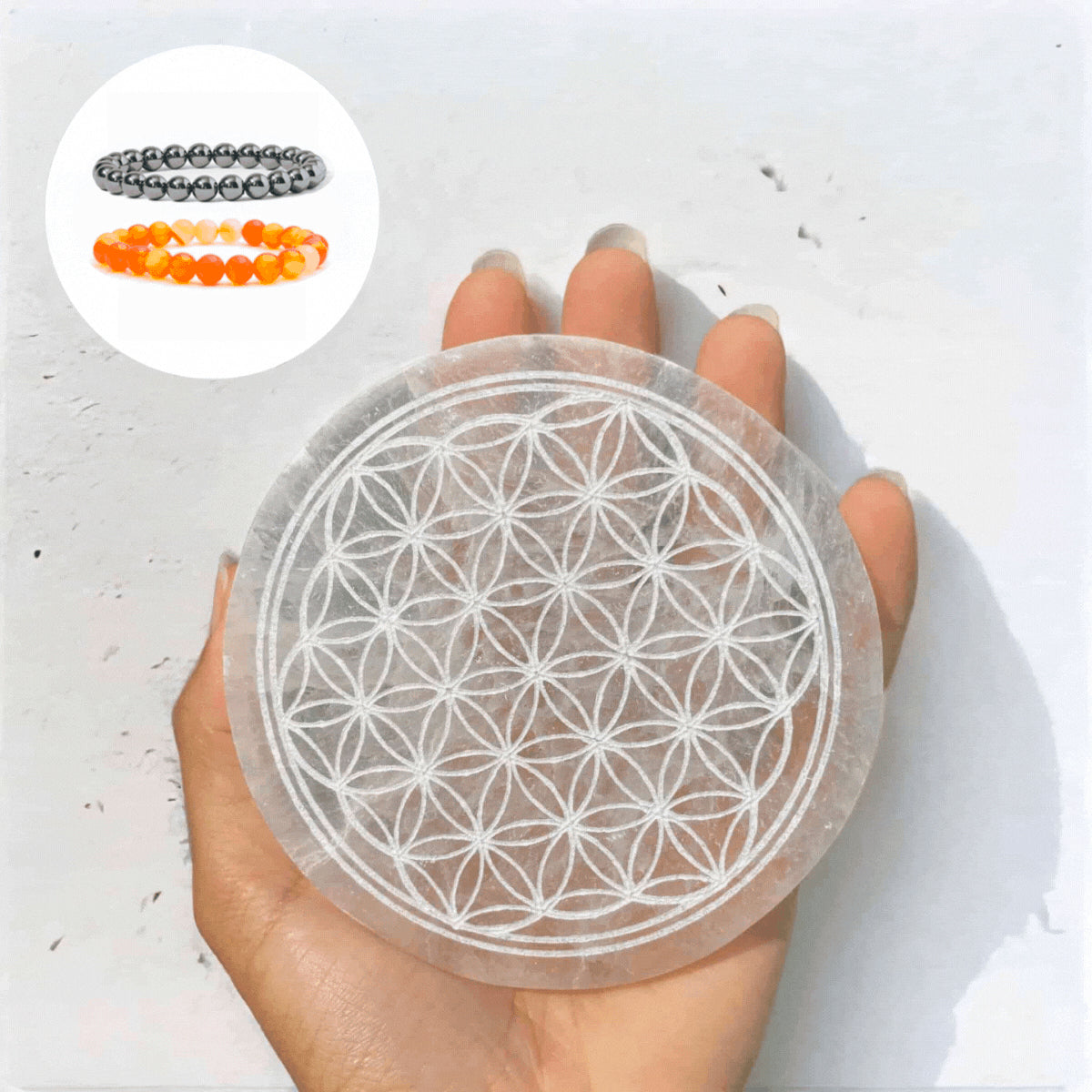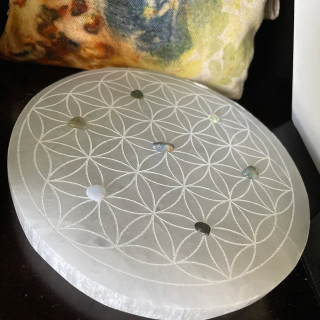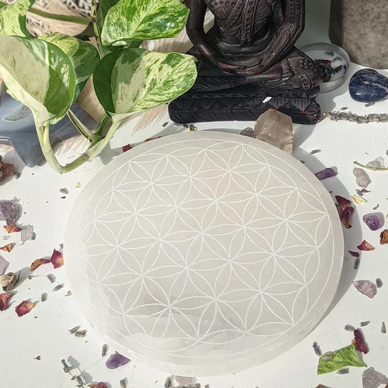 Esta pieza no solo es funcional, sino también hermosa. Coloca la Selenita de Flor de la Vida en tu espacio meditativo o en cualquier lugar de tu hogar para agregar un toque de serenidad y paz.