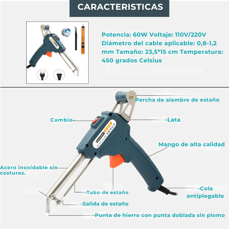 Este soldador eléctrico es la elección ideal para tareas de soldadura de precisión. Con características como el diseño de seguridad y el interruptor de energía integrado, este soldador ofrece calidad y precisión en cada uso.