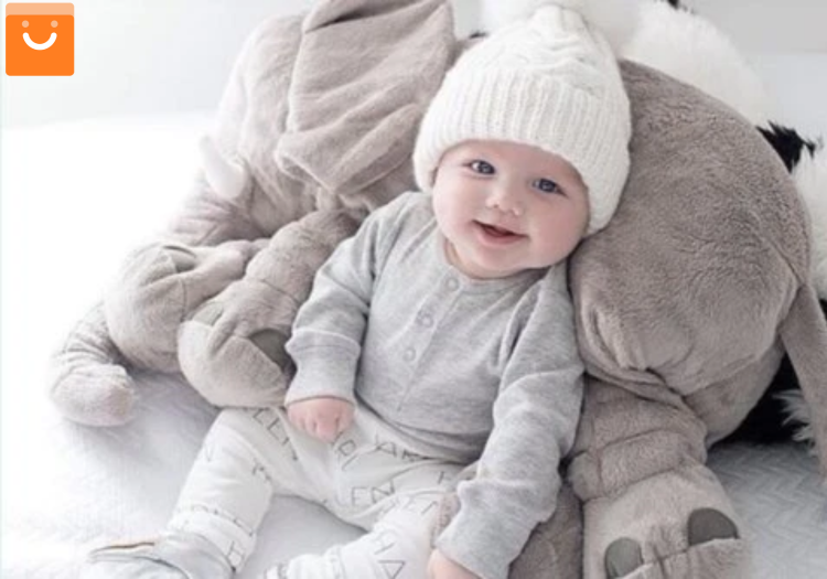- El elefante de peluche sirve como un original cojín de apoyo para sujetar al bebé a la hora de dormir: perfectamente protegido por las patas, las grandes orejas y la trompa del paquidermo, tu hijo siente la seguridad y la calma necesarias para relajarse y dormirse plácidamente.