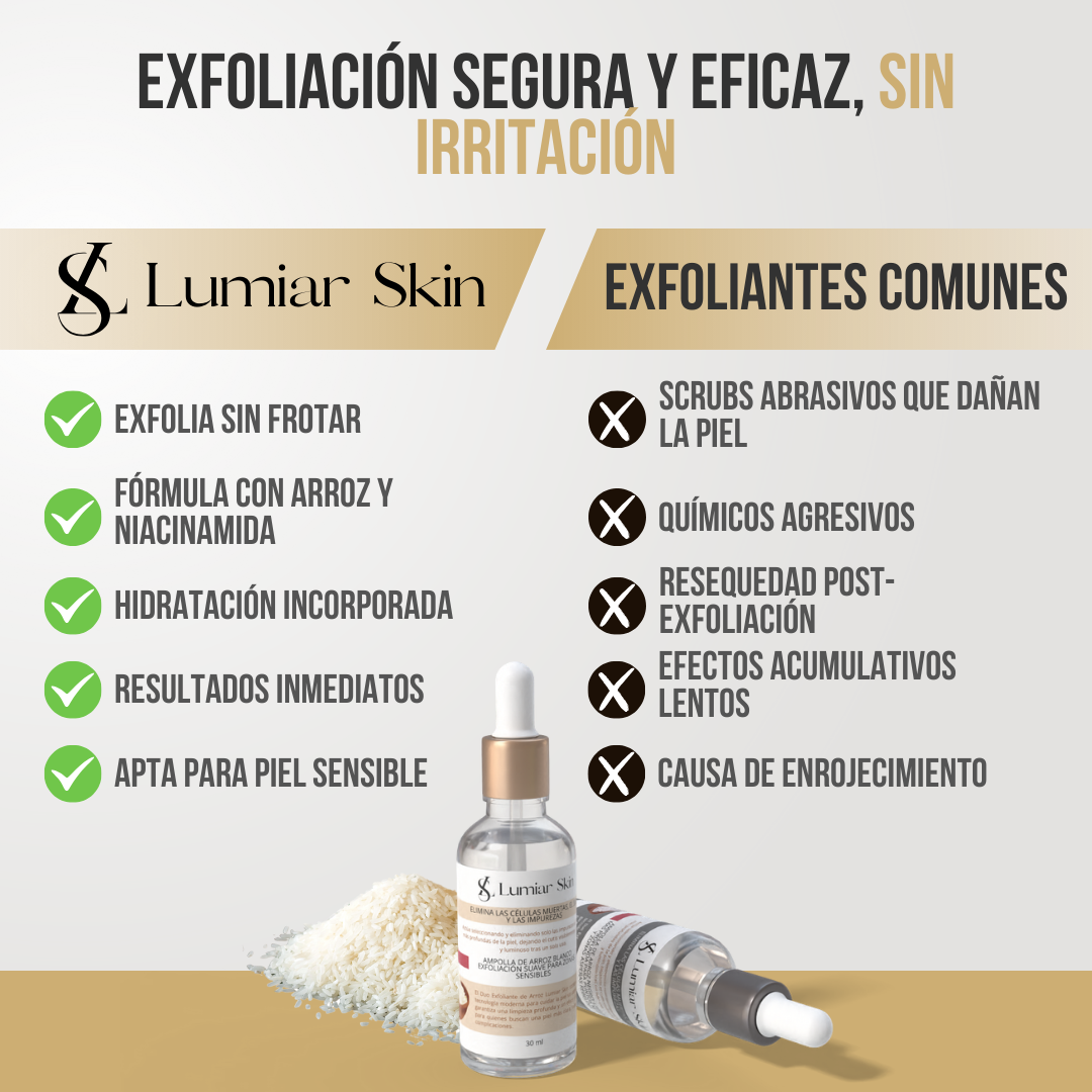 A diferencia de los tratamientos genéricos que a menudo son costosos, invasivos o difíciles de usar, LUMIAR SKIN™ combina la tradición del arroz con tecnología moderna para cuidar la piel sin dañarla.
