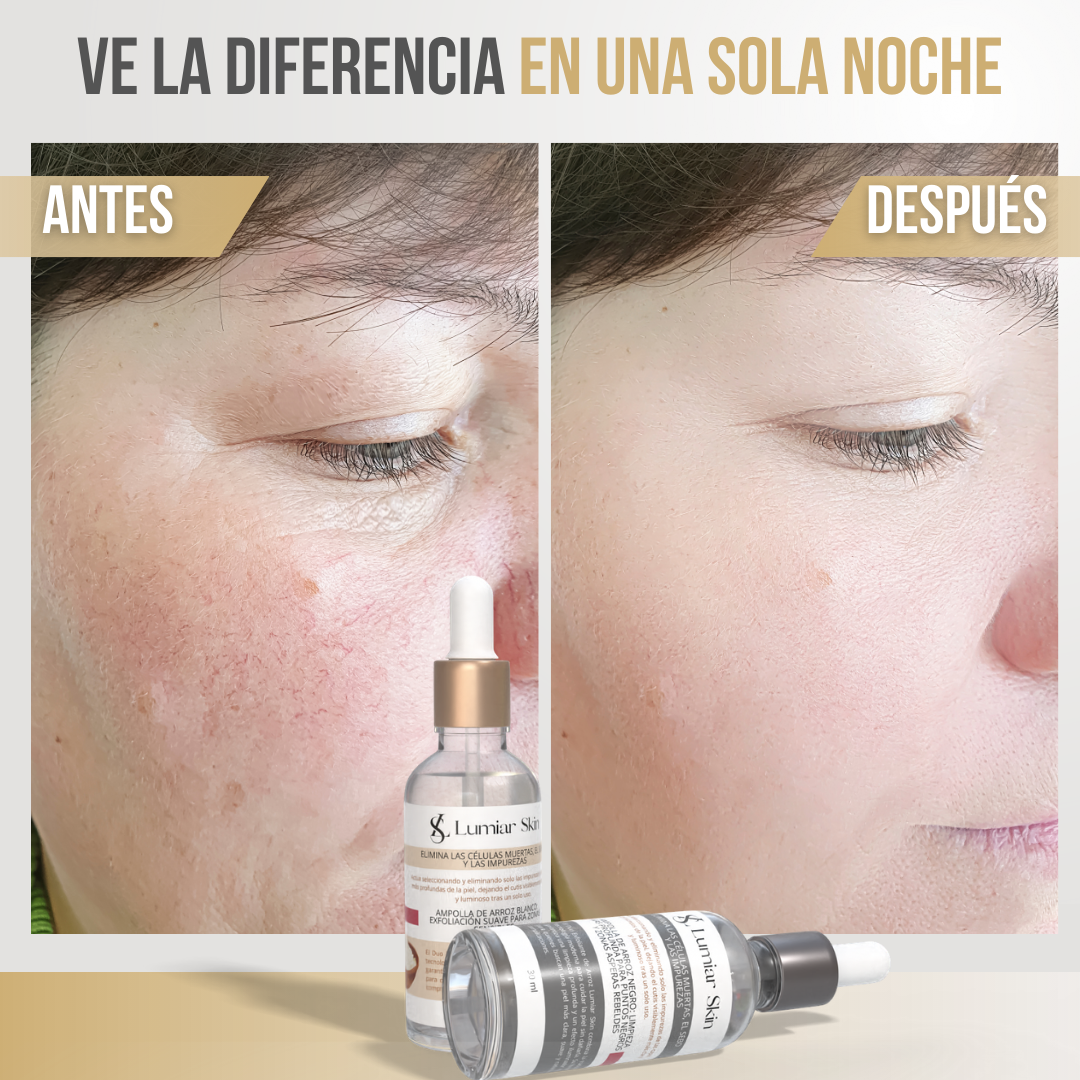 Su fórmula de dos pasos garantiza una limpieza profunda y un efecto iluminador inmediato. Es ideal para quienes buscan una piel más clara, suave y radiante sin irritación ni complicaciones.