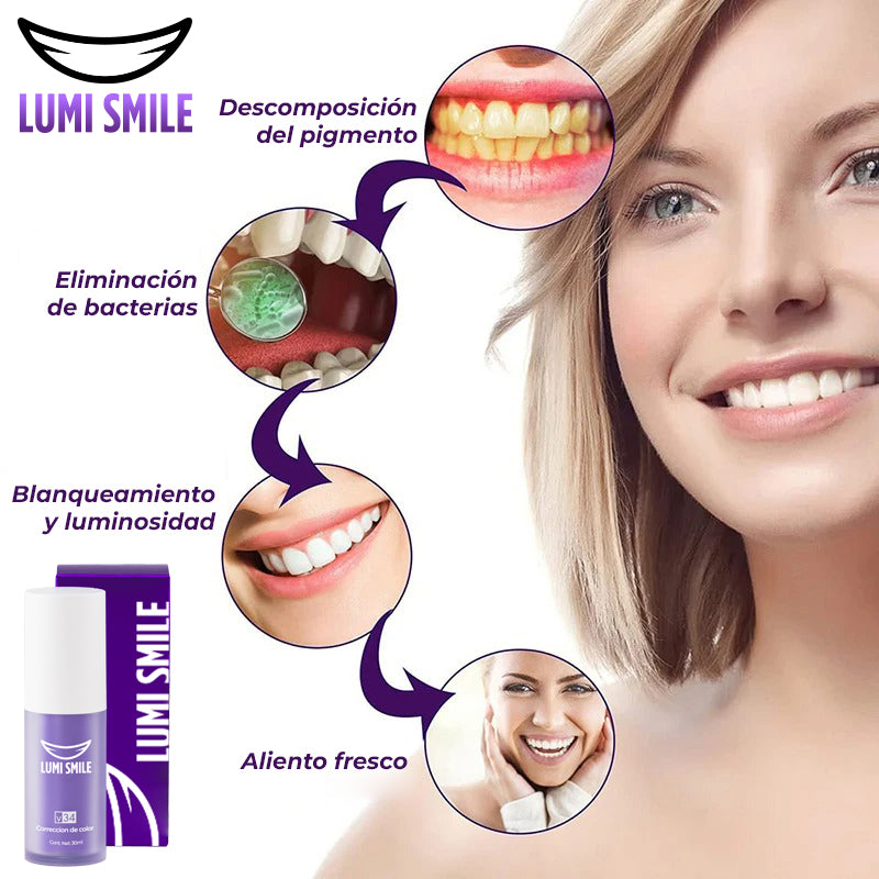 ¿Cansado de esas manchas amarillas que arruinan tu sonrisa? Lumi Smile te ofrece una solución rápida y efectiva para neutralizar los tonos amarillos de tus dientes al instante, dejándolos visiblemente más blancos y brillantes con solo una aplicación.