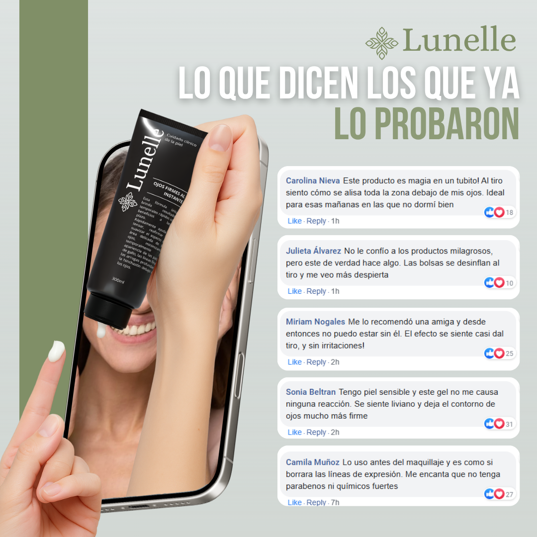 Lunelle™ se distingue por su capacidad para ofrecer resultados inmediatos sin la necesidad de procedimientos invasivos. Su fórmula innovadora, actúa de manera rápida para reducir visiblemente la hinchazón, las arrugas y las líneas finas alrededor de los ojos.