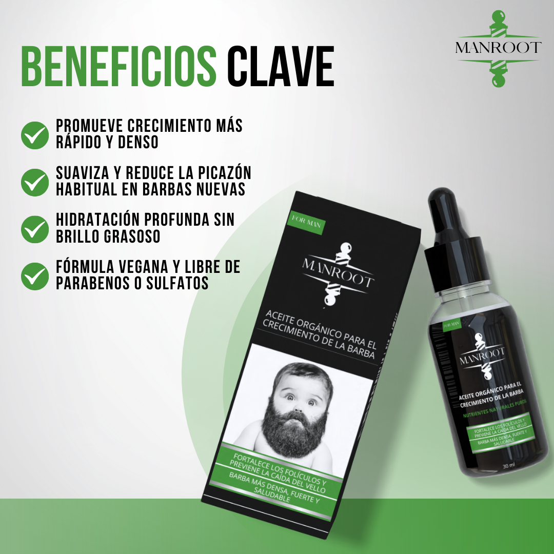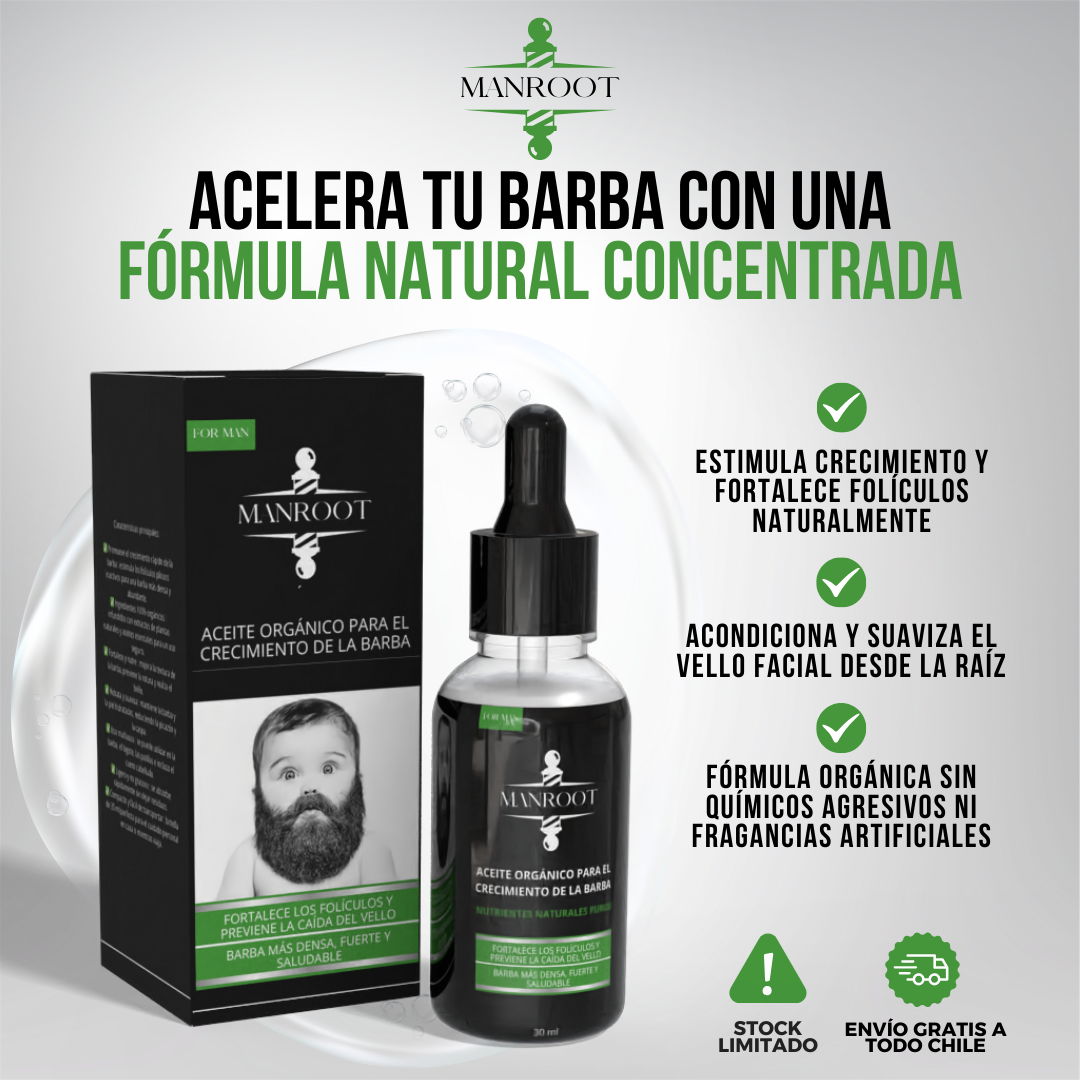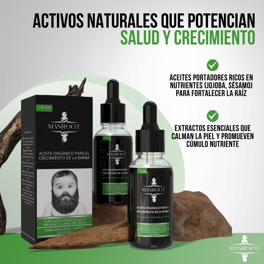 Manroot™ es la solución definitiva para lograr una barba más gruesa, abundante y saludable de manera natural. Formulado con ingredientes 100% orgánicos y extractos de plantas, este sérum trabaja directamente sobre los folículos pilosos, estimulando el crecimiento incluso en áreas donde el vello es irregular o fino.