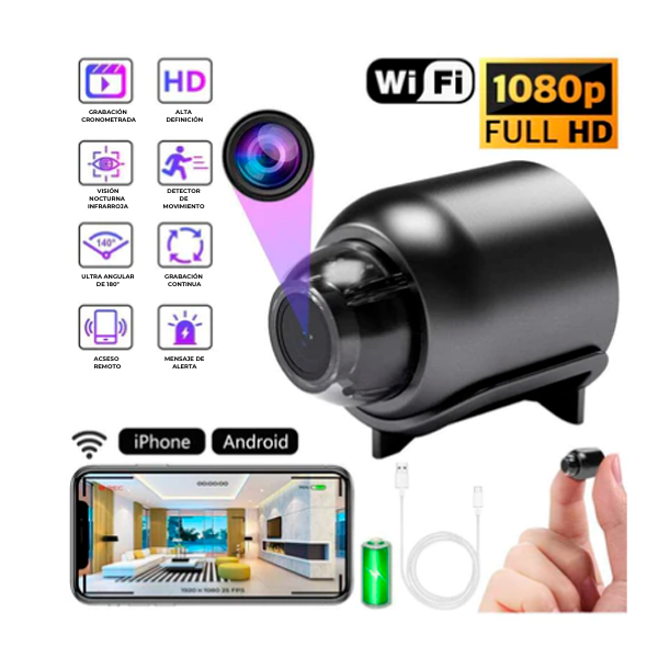 Mantén tus espacios seguros y protegidos con nuestra mini cámara espía, con conectividad WiFi para un control total desde tu dispositivo.