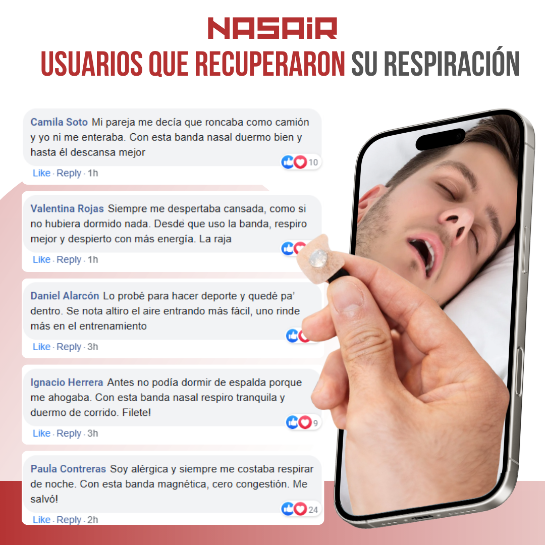 Con NASAIR™, experimentarás una mayor claridad respiratoria, reducción de ronquidos y un flujo de aire óptimo para tu bienestar diario y rendimiento físico.
