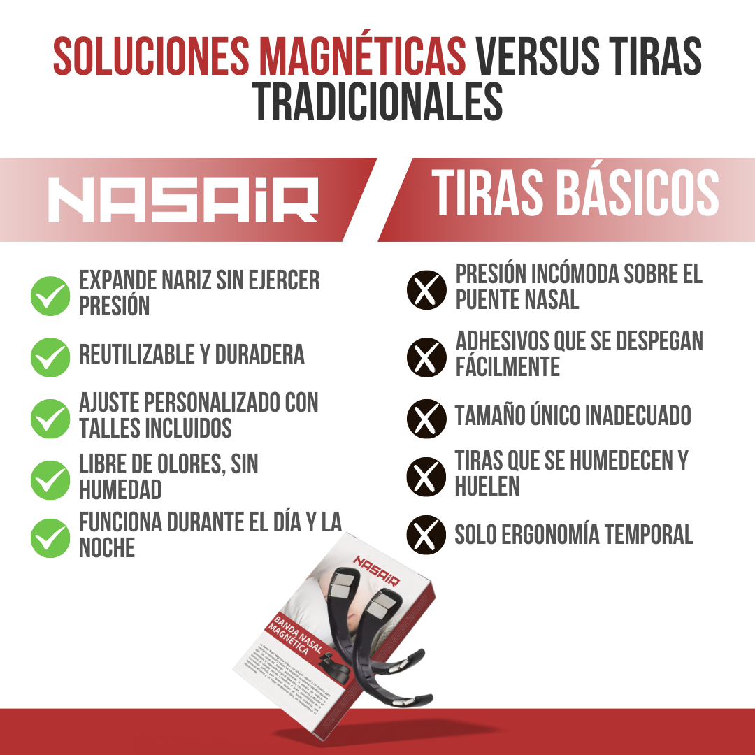 Su sistema magnético ayuda a abrir los conductos nasales, aumentando la entrada de oxígeno y optimizando la oxigenación corporal. Ideal para uso nocturno y durante el ejercicio.
