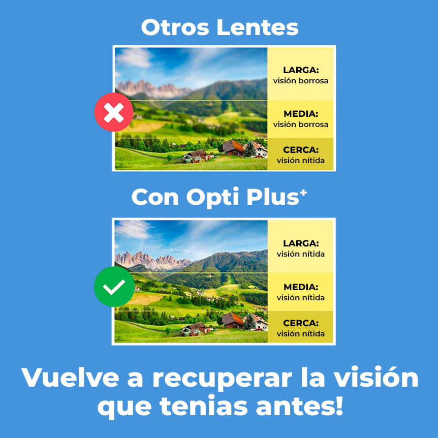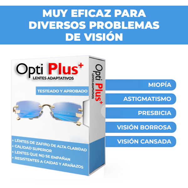 Gracias a la construcción ligera y a la vez resistente de estos lentes, podran ayudarte a combatir una amplia variedad de problemas de la vista. OptiPlus™ es ideal para tratar la miopía, el astigmatismo, la presbicia, la visión borrosa y la visión cansada.