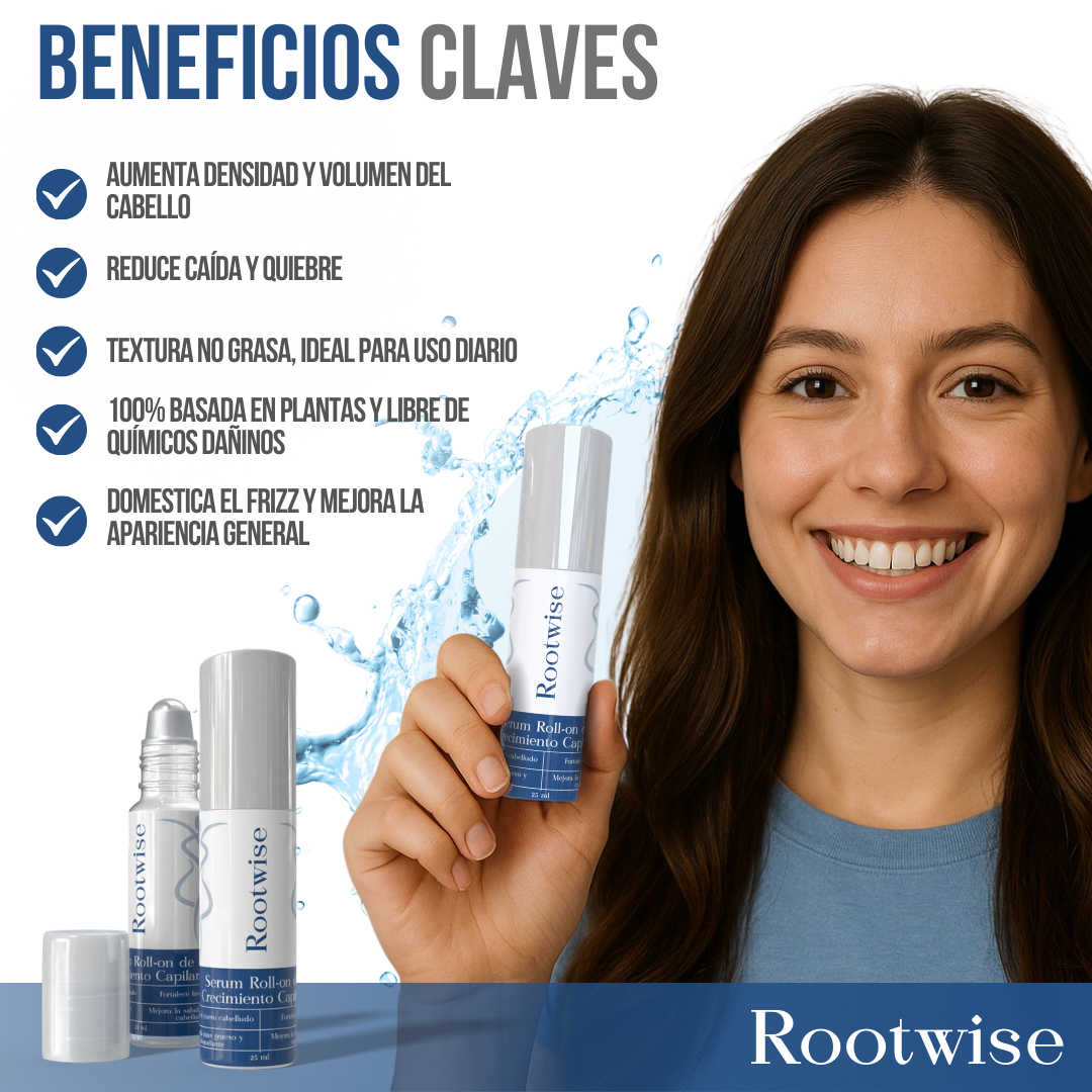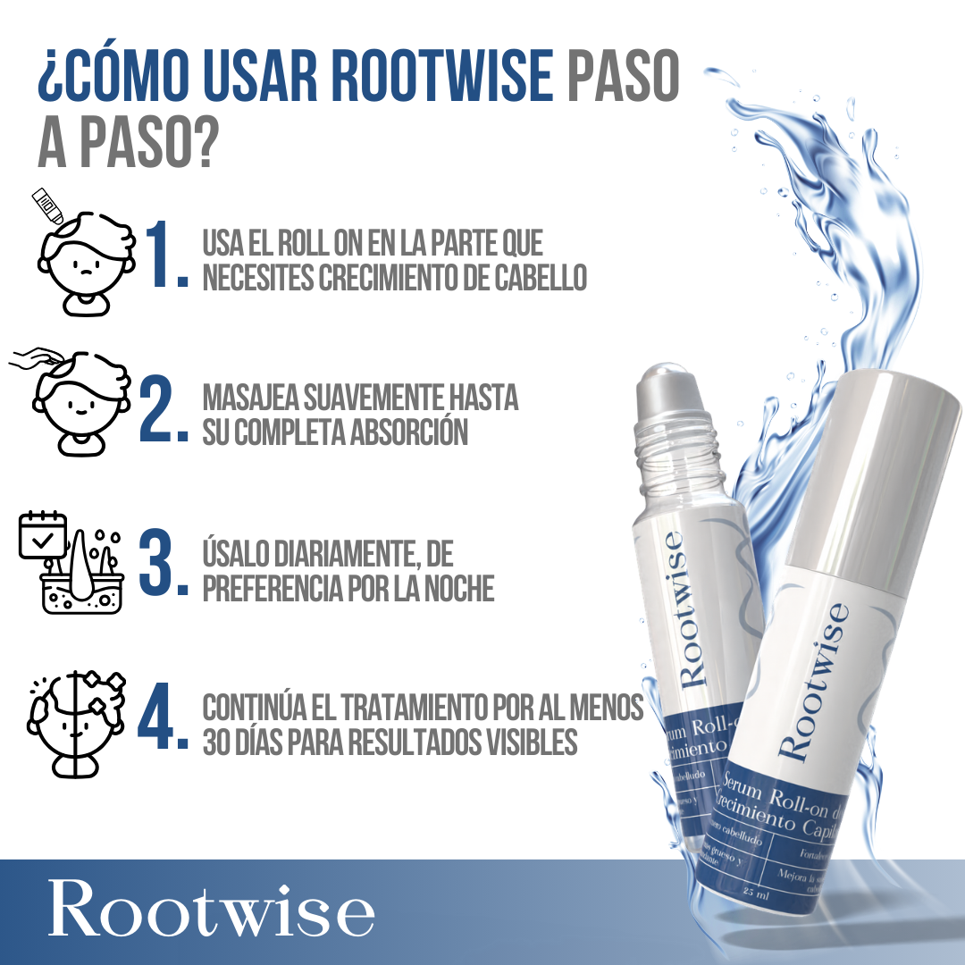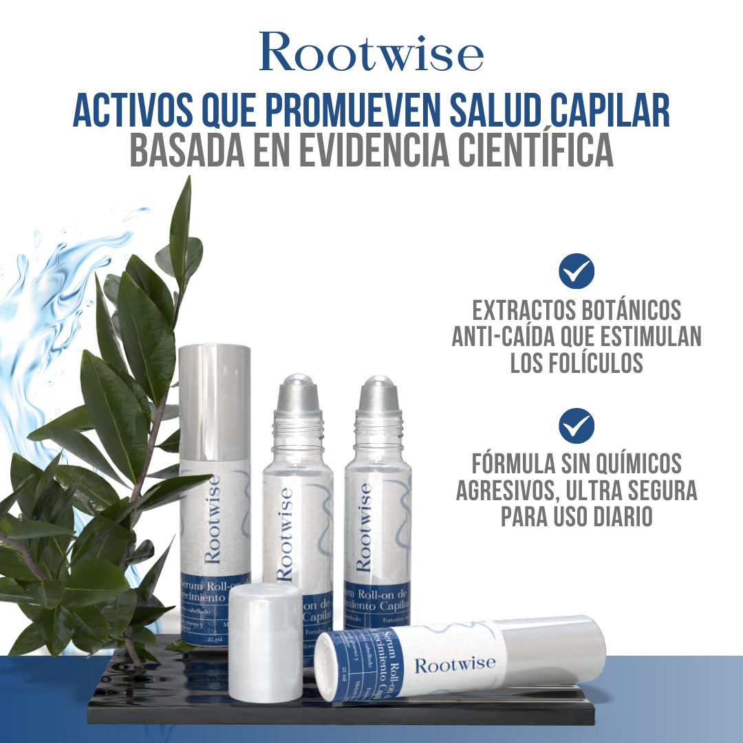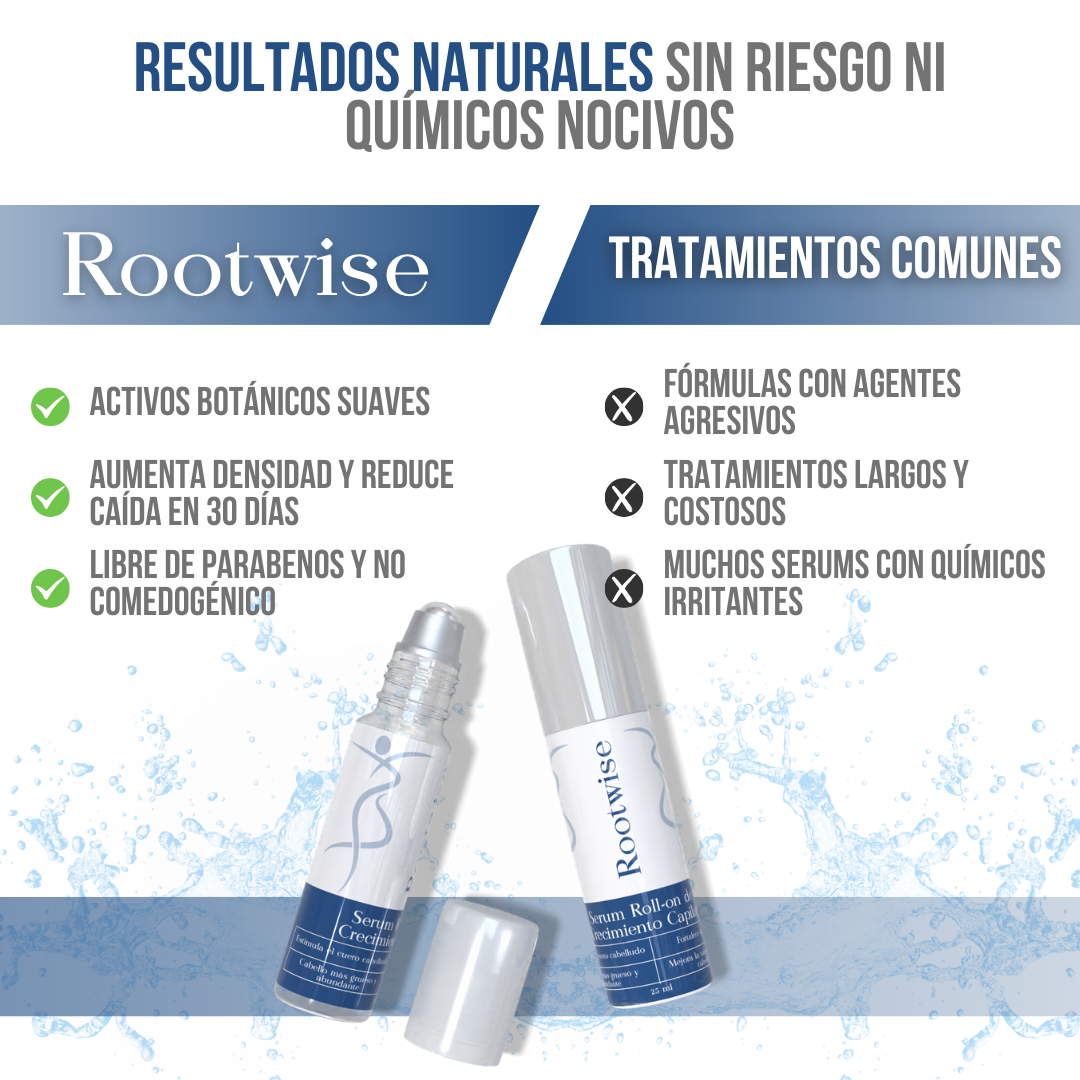 Rootwise™ está formulado con ingredientes botánicos naturales, por lo que es seguro y no produce efectos adversos conocidos. En casos de piel sensible, se recomienda probar una pequeña cantidad antes del uso completo.
