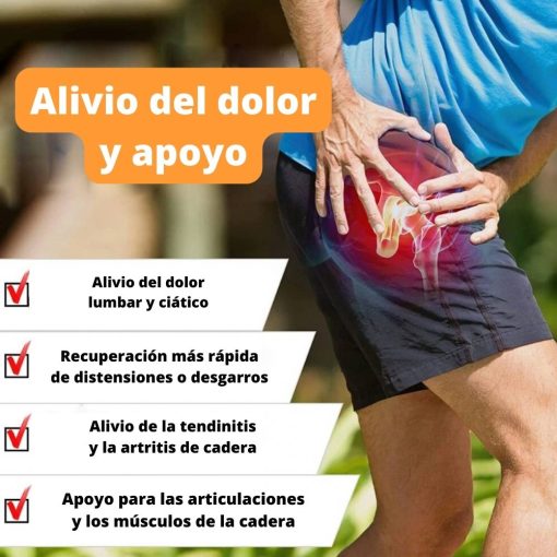 Descubre la solución perfecta para el dolor de ciática, las distensiones de isquiotibiales, los tirones inguinales, la artritis de cadera y otras afecciones. Esta faja de compresión proporciona un alivio inmediato que te permitirá moverte sin restricciones, Reduciendo la presión sobre el nervio ciático y disfrutar de una vida libre de dolor.