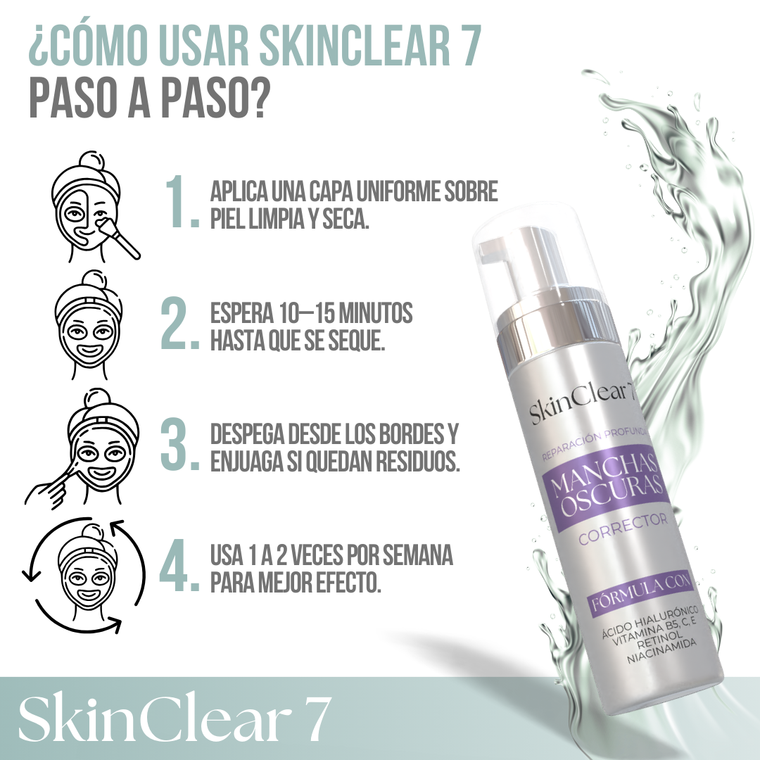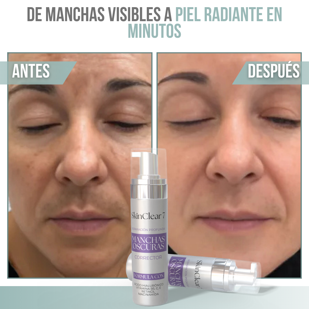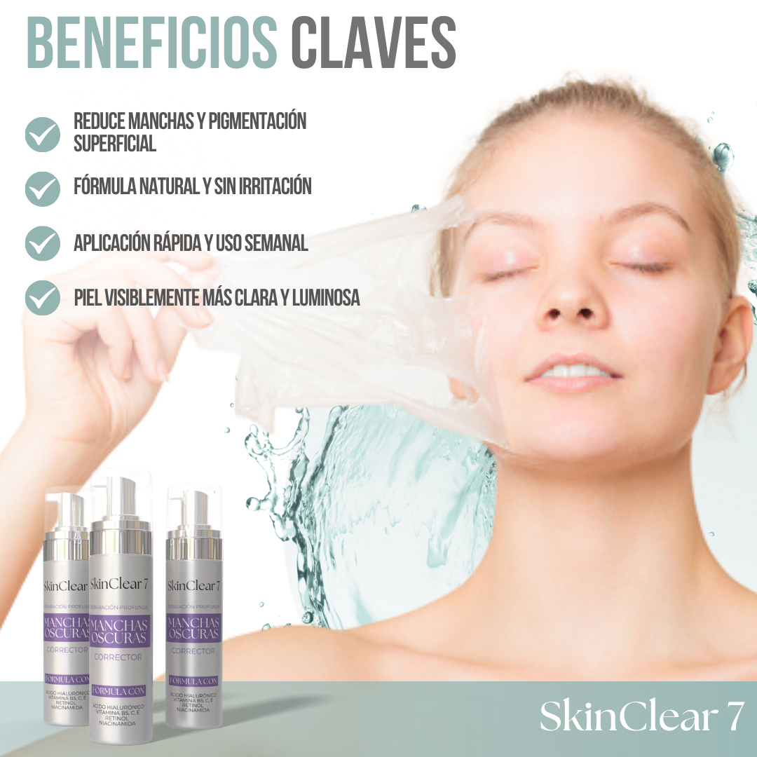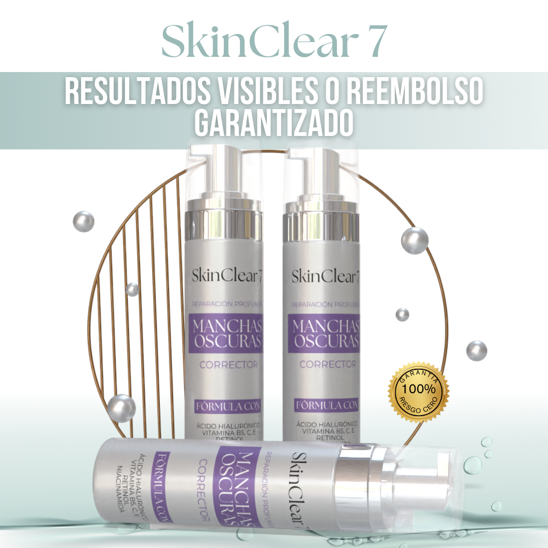 SkinClear7™ combina activos poderosos y poco comunes que atacan las manchas de pigmentación desde la raíz, logrando una piel más uniforme, brillante y saludable. Sus ingredientes como Vitamina C, Retinol, Niacinamida y Arbutina trabajan en sinergia para reducir manchas, hidratar y proteger la piel, incluso las más sensibles.