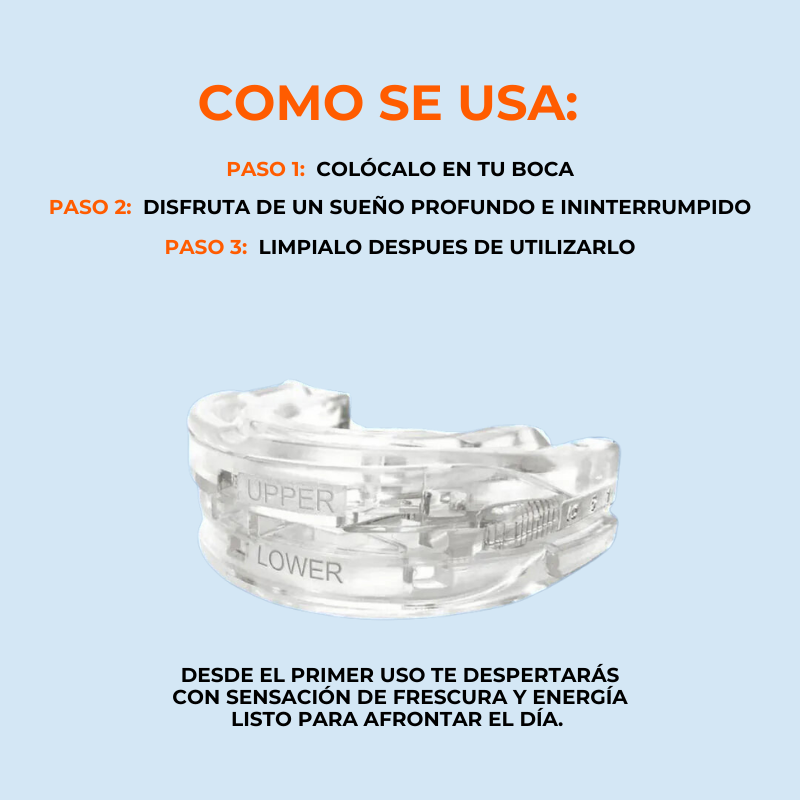 Despierta renovado y lleno de energía cada mañana con nuestro revolucionario dispositivo antironquidos. ¡Imagina una noche de sueño reparador y tranquilo, sin los molestos ronquidos que interrumpen tu descanso y el de tu pareja!