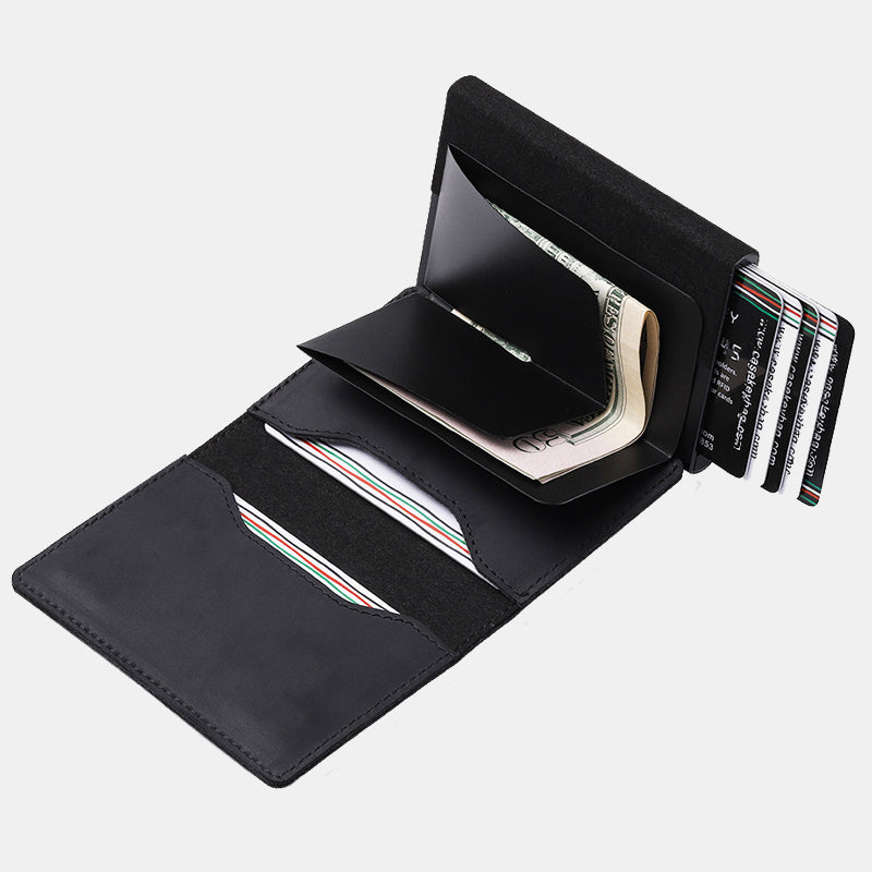 Experimente una combinación perfecta de estilo, funcionalidad y seguridad con nuestra billetera de cuero diseñada para complementar su estilo de vida moderno.