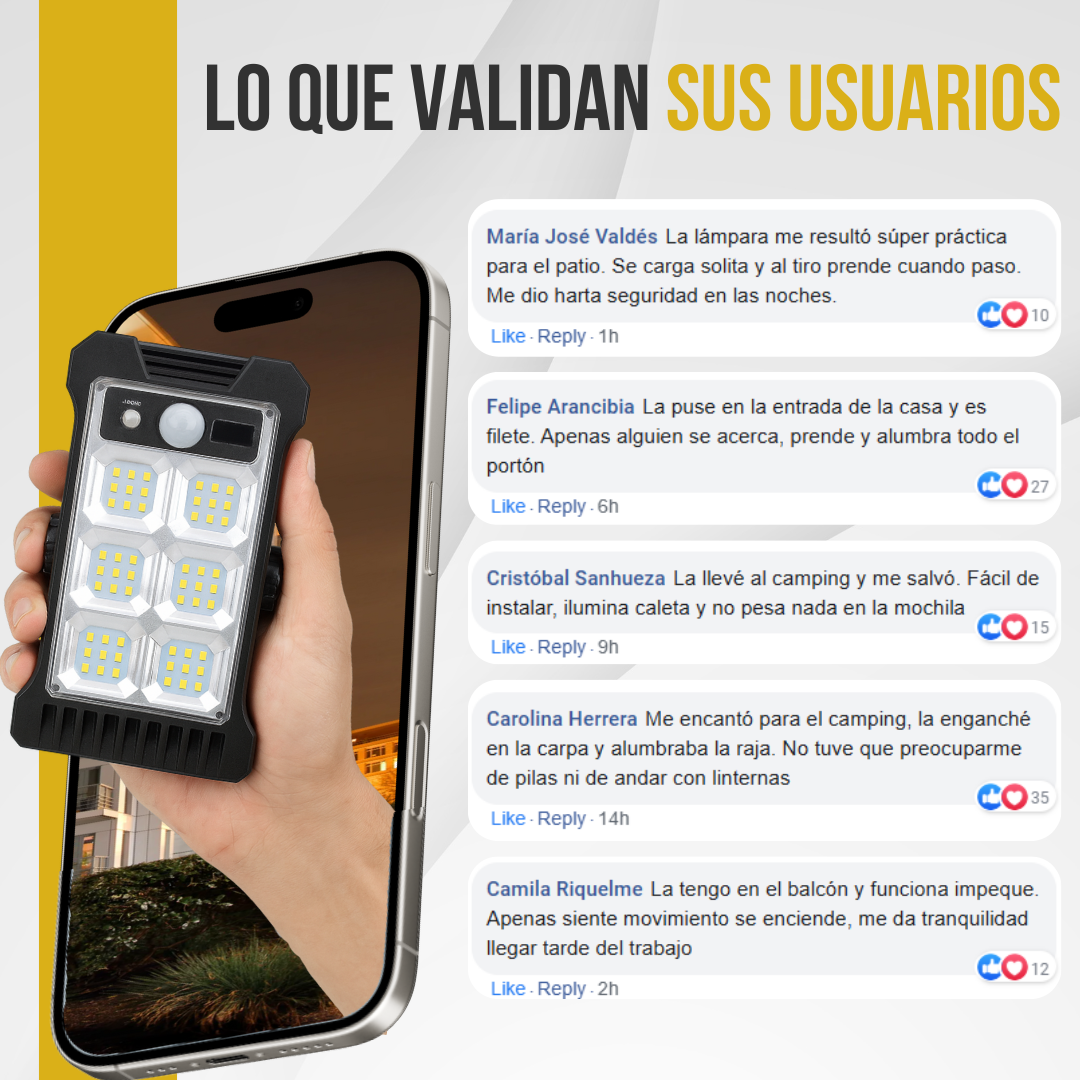 Perfecta para camping, patios, porches o paseos nocturnos, combina ligereza y portabilidad con una funcionalidad excepcional. Su diseño resistente permite moverla o ajustarla según tus necesidades sin comprometer la estabilidad o la durabilidad, haciendo que cada instalación sea rápida y sin complicaciones.