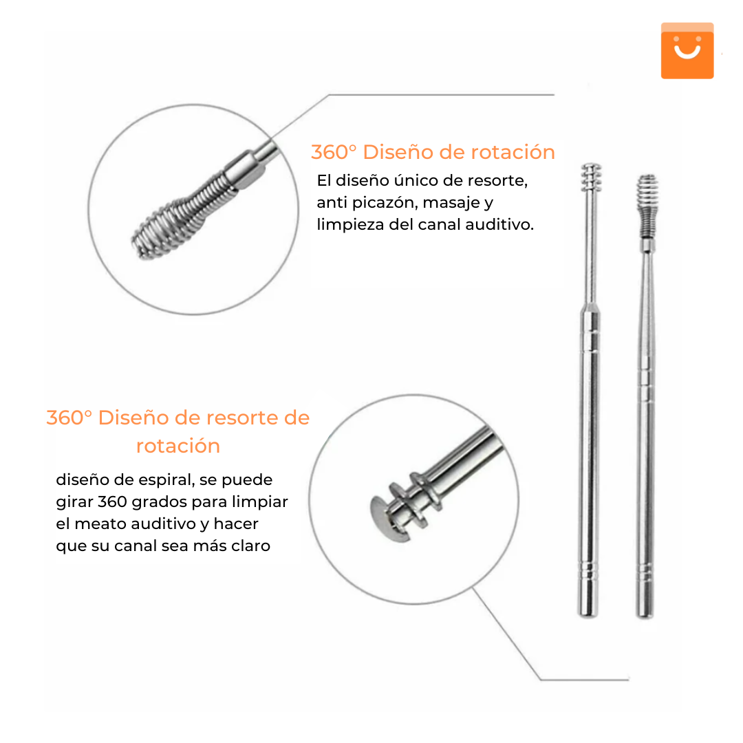- Acero inoxidable de alta calidad, especialmente diseñado para extraer el exceso de cerumen de forma segura y cómoda, y fácil de limpiar